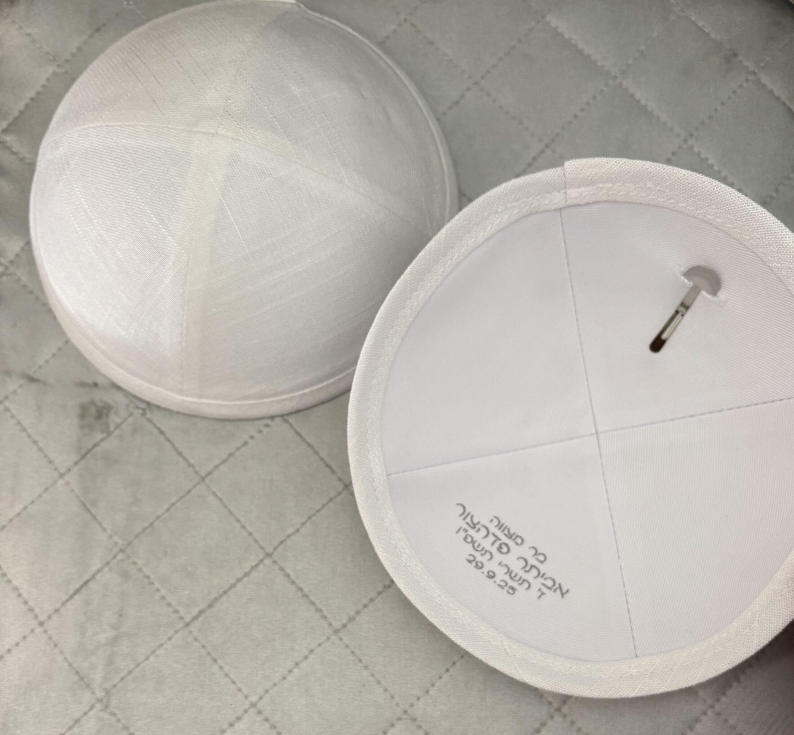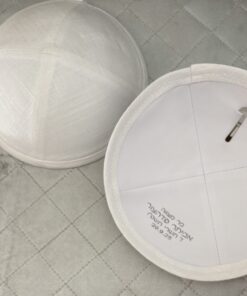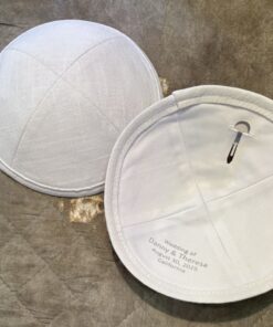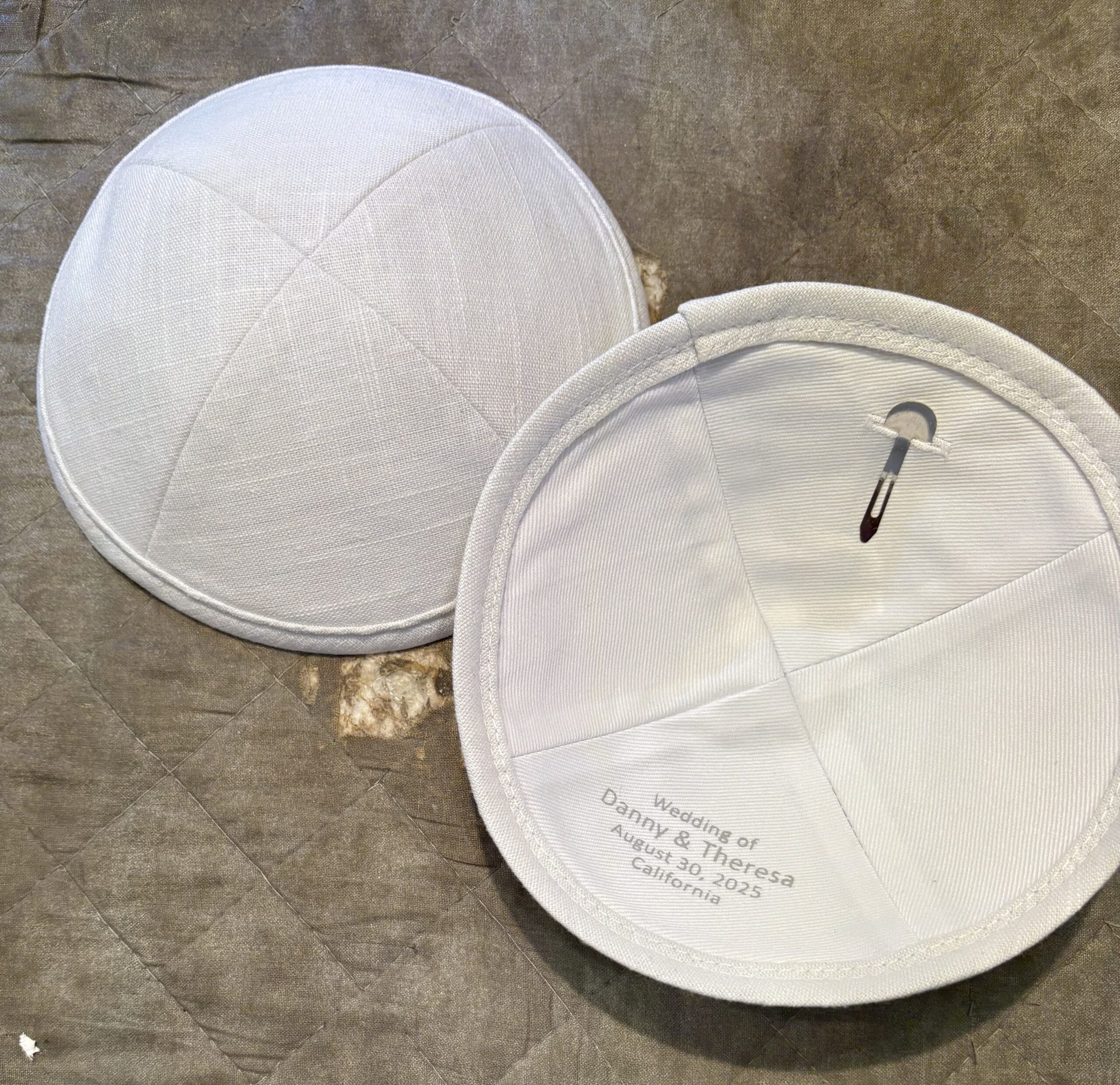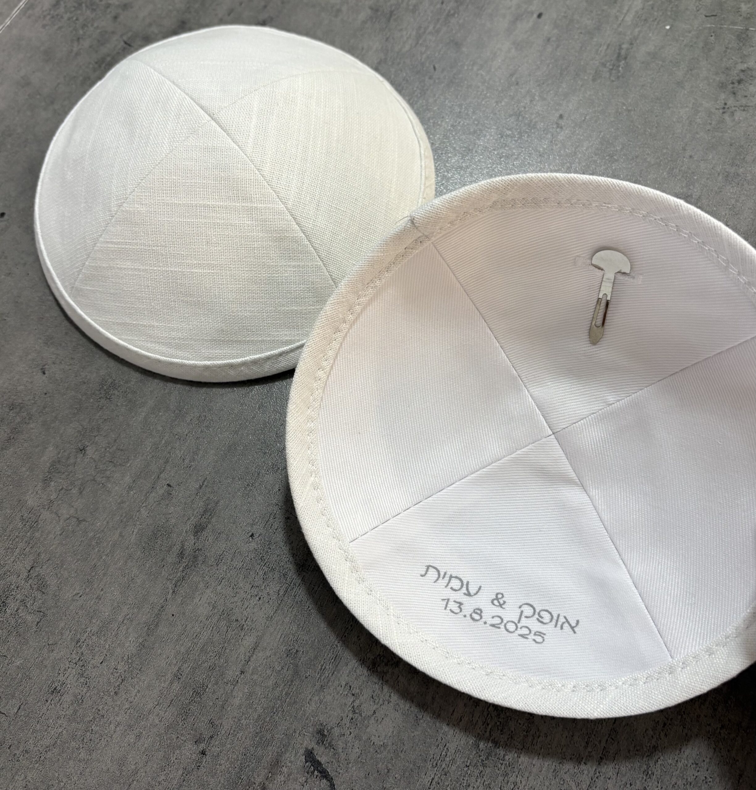 כיפות פשתן בצבע לבן מהודרות לאירועים כולל הדפסה פנימית/חיצונית לבחירה